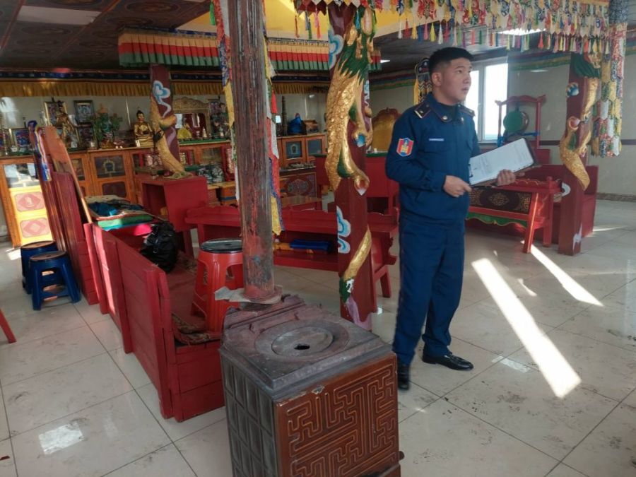 검사는 사원 및 종교 기관 건물의 재해 보호 및 화재 안전 요구 사항을 정의하는 몽골 재해 보호 및 화재 안전 법률 및 표준 및 기술 규범의 구현을 확인하고 전문적이고 방법론적인 지침을 제공합니다.