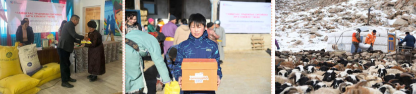 "월드비전 몽골" 국제기구는 5액씩 270가정에 8100만 투그릭의 현금을 지원했다. " 월드비전 몽골" 국제 기구, 공공 및 민간 기업은 "함께 극복" 재난 예방 캠페인을 시작하고 Five Sums의 270가구에 5,250만 MNT의 식량 및 동물 사료를 지원했습니다. 또한 저드 위험에 처한 50명의 양치기 가족 50명의 어린이 50명에게 따뜻한 옷과 750만 MNT 상당의 위생 패키지를 지원했습니다.