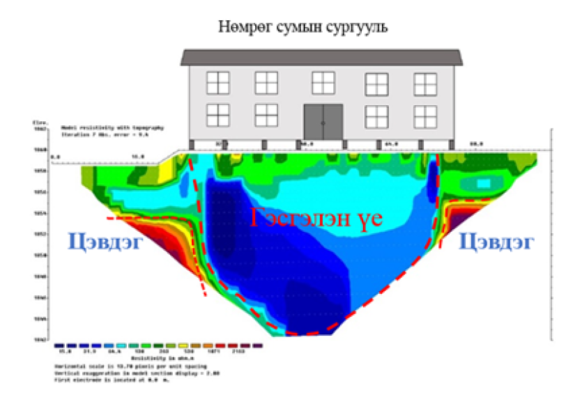 이 연구 결과에 따르면 학교 건물의 기초 아래에는 표면 아래 20m 깊이까지 분화구 모양의 해빙이 형성되어 있는 것으로 확인되었습니다. 첫 번째 원칙에 따라 학교 건물은 얼음이 녹지 않고 열 균형의 안정성을 확보하기 위해 속이 빈 기초로 지어졌지만 구조는 얼음이 녹으면서 침하, 변형 및 균열이 많이 발생했습니다. .