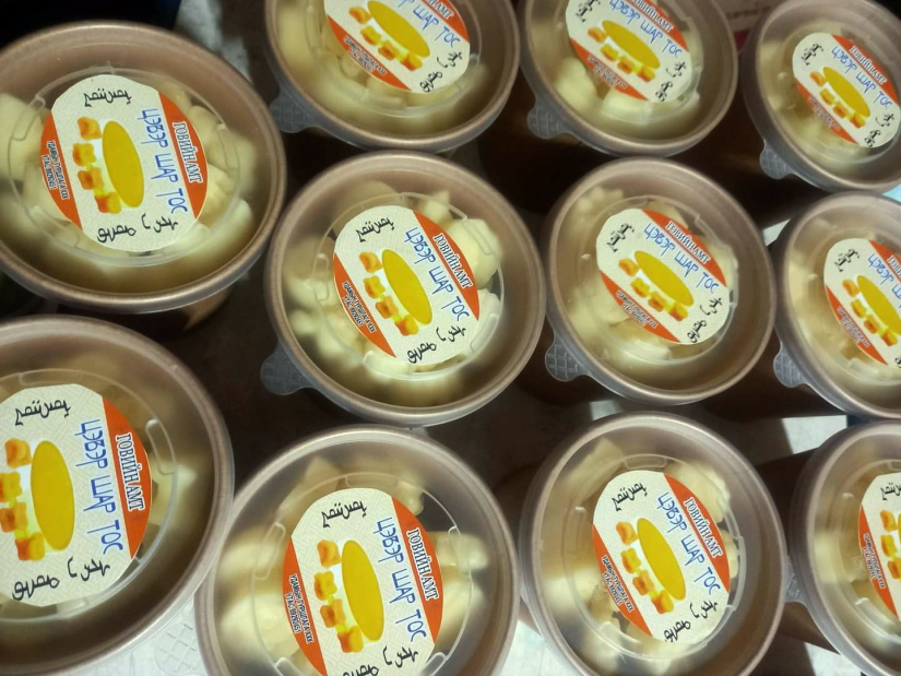 - 현재 13종의 제품을 생산 판매하고 있습니다. 예를 들어, 우리는 3가지 유형의 몽골 보드카, 두부, 두부, 버터기름, 버터기름, 버터기름 및 비기름기, 선물 세트를 생산하고 있습니다. 버터 기름을 넣은 시미야 보드카는 발찌 모양의 버터 기름 2~3개로 만듭니다. 남편과 의논 끝에 손으로 만든 발목 모양의 버터기름틀입니다. 조사한 결과 많은 성형 방법이 있습니다. 이 일반 커드의 분홍색은 우리 계곡에서 자라는 사프란의 존재 때문입니다. 그러나 노란색은 고비에서 자란 산자나무가 들어 있고 연분홍은 카드와 아니스 같은 과일이 들어 있습니다. 식용색소, 건조제, 밀가루 등을 사용하지 않습니다. 우유는 한 방에서 펌핑됩니다. 드릴러는 냄비에서 직접 제공됩니다. 그러나 우유는 간을 지방으로 만듭니다.