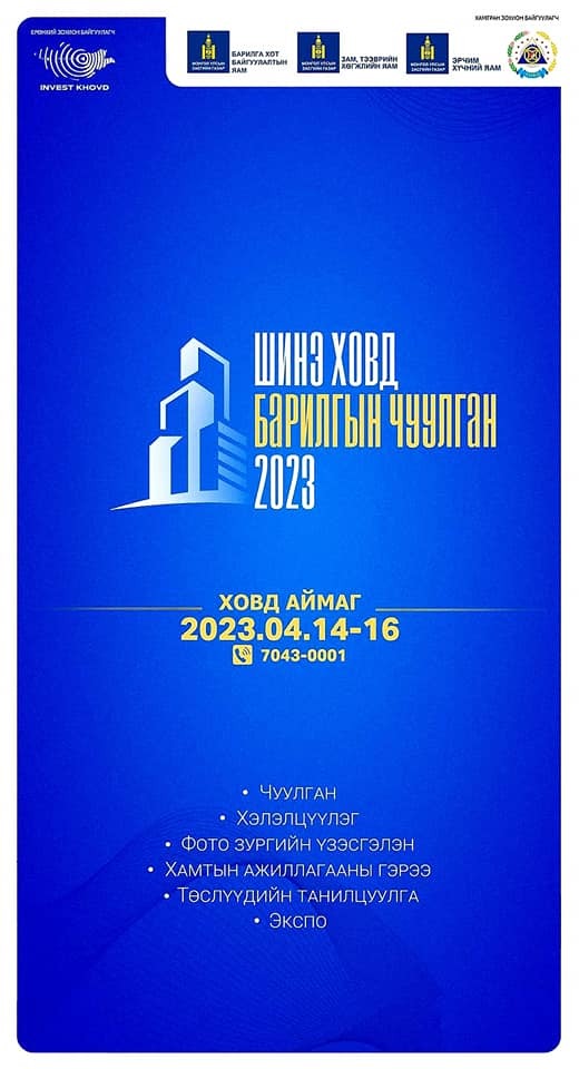 "New Hovd Construction Conference-2023"은 4월 14일부터 16일까지 Hovd 지방에서 개최됩니다.