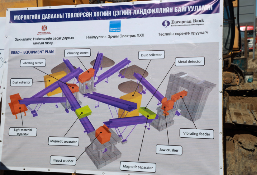 J. Sandagsuren 경제 및 인프라 문제를 담당하는 수도 주지사의 첫 번째 부의장은 중앙 집중식 매립지에서 새 공장의 진행 상황을 검토하면서 " Ulaanchuluut 매립지는 가득 차서 2024년에 폐쇄될 것입니다. 또한 쓰레기를 매립하는 방식은 환경과 인간의 건강에 부정적인 영향을 미칩니다. 따라서 모링패스 매립지에 공장을 오픈하면 폐기물을 받아 세련되고 환경친화적으로 매립할 수 있는 기회가 될 것입니다. 또한 건물 철거 시 발생하는 폐기물을 재활용하는 첫 번째 공장이 가동 될 예정입니다 . 고체 건설 폐기물을 자갈과 자갈로 처리하여 경제 순환에 투입하는 것은 중요 하고 유익한 프로젝트 입니다 ." 말했다.