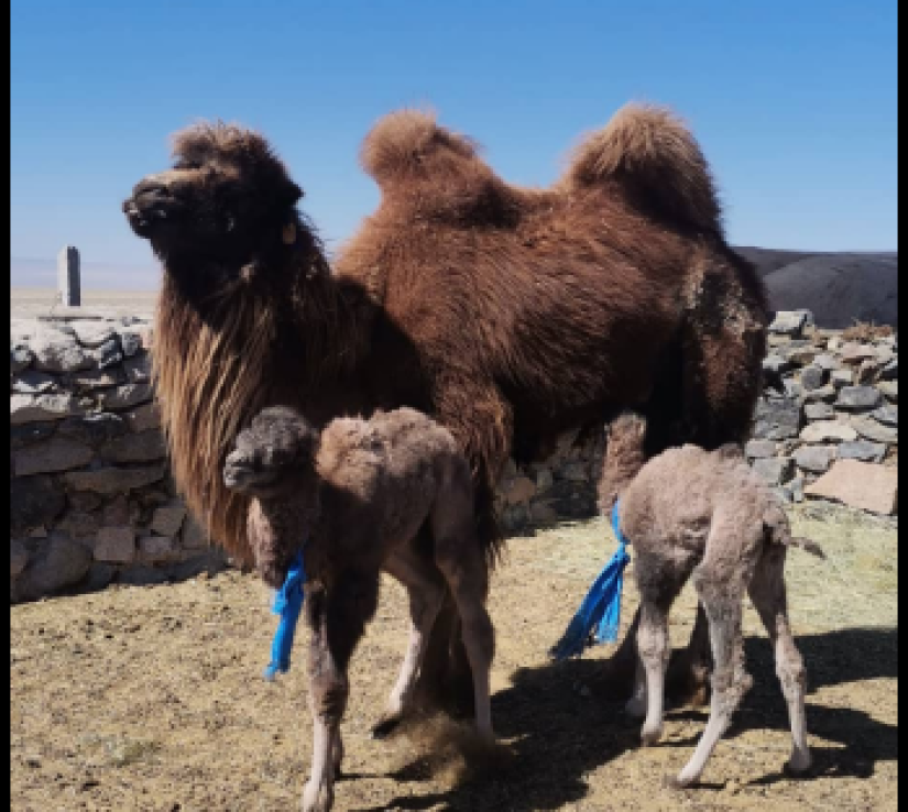 이달 8일 호브드주 찬드만섬 네트워크팀의 목동인 B. 다바수렌의 무리에서 나온 붉은 낙타가 쌍둥이를 낳고 살아남았다.