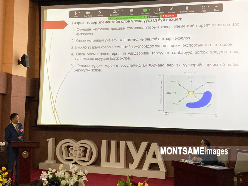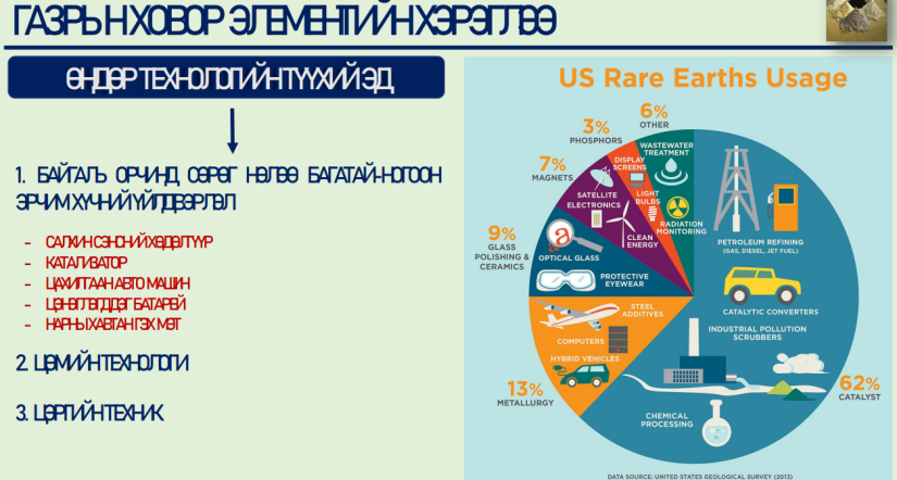 전 산업통상부 장관 Ts. Davaadorj 박사는 희토류 원소는 그 함량과 양이 적지만 경제에서 중요한 역할을 하며 첨단 기술의 "비타민"이라고 말했습니다.
