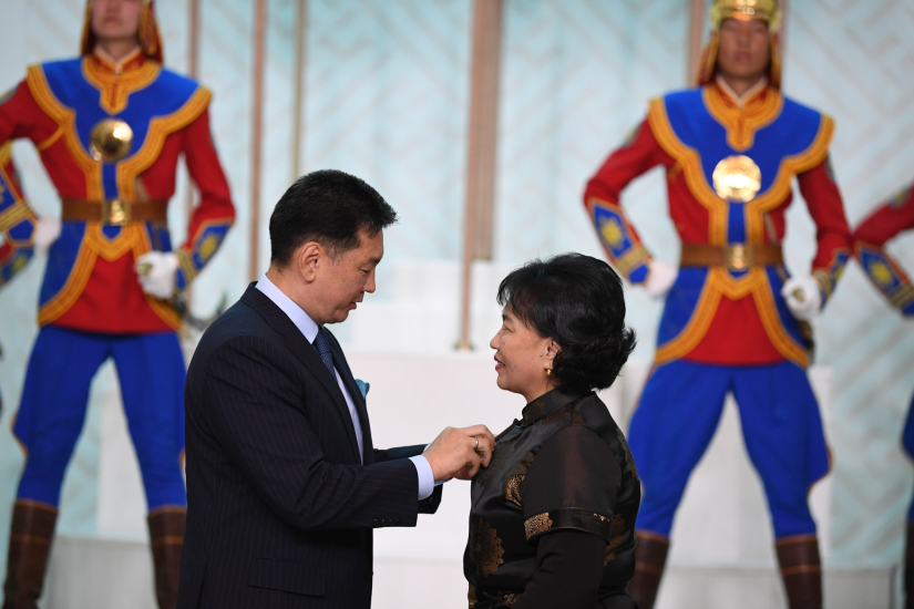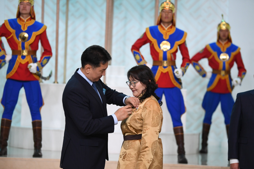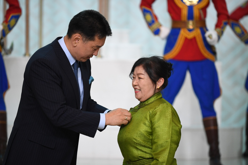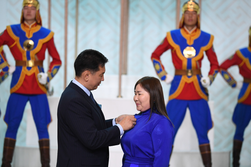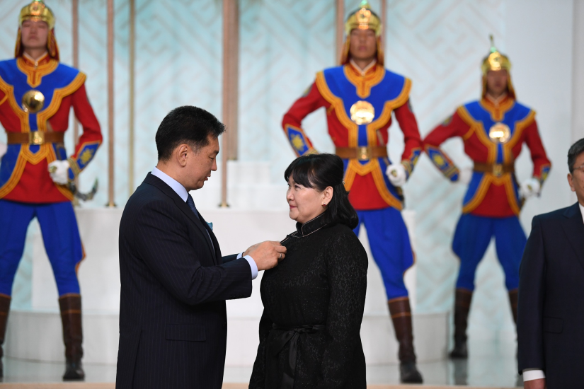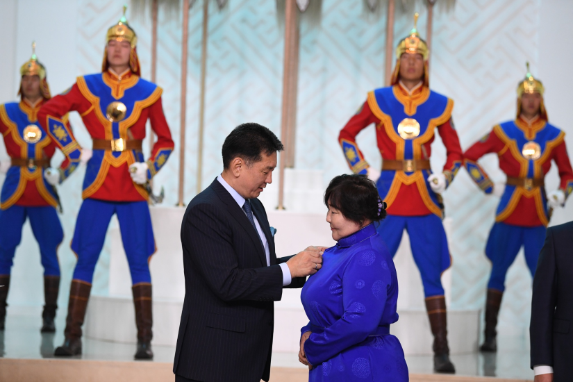 U. Khurelsukh 몽골 대통령은 최고의 국가 상, 메달 및 메달을 받은 사람들과 그들의 가족, 자녀 및 동료를 축하하고 기원했습니다.