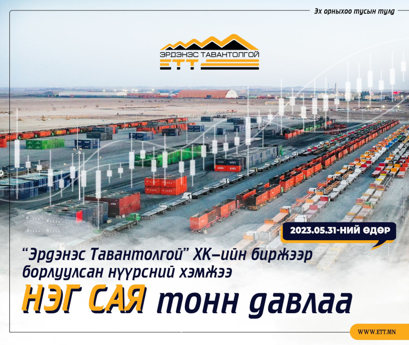 "Erdenes Tavantolgoi" JSC는 5월 31일 몽골 증권 거래소의 공개 전자 시스템에서 18차 석탄 거래를 조직하고 5 배치 또는 32,000톤의 점결탄을 톤당 USD 131.6에 판매했습니다.