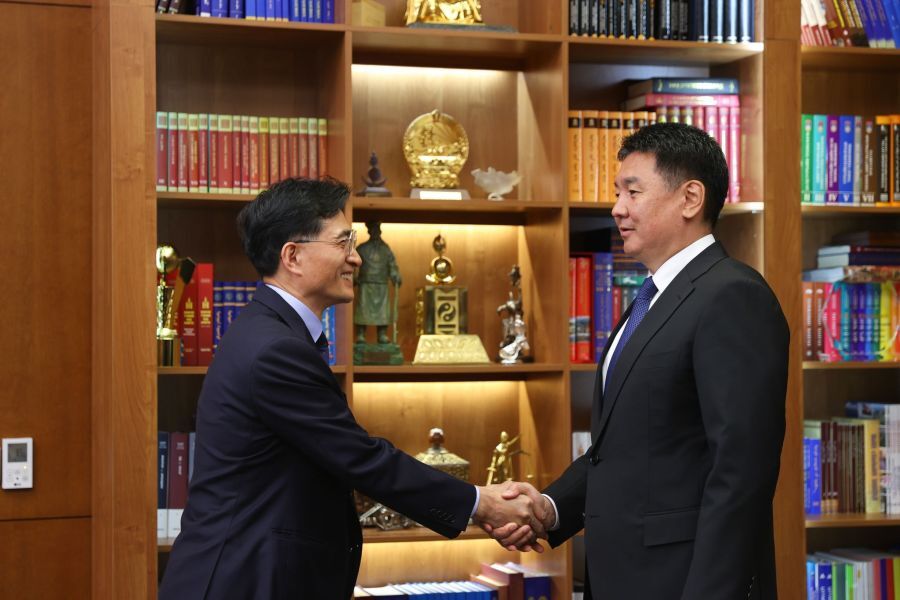 오늘, Ukhnaagi Khurelsukh 몽골 대통령이 진재선 유한킴벌리 한국 대표이사 대표단을 영접했습니다.
