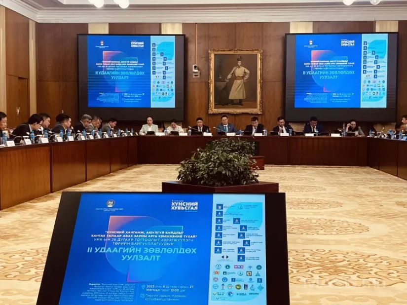 협의 회의에서 내무부 국장인 Ts. Bolorchuluun은 "식품, 농업 및 경공업 부문의 작업 진행"에 대해, 몽골 은행은 식품, 농업, 경공업 부문." G. Dolgoon 초대 부사장이 정보를 제공했습니다. 또한 "결의안을 구현하는 부처의 계획 및 구현"에 대해 교육 과학부 장관 L. Tsedevsuren, 보건부 장관 S. Togsdelger, "결의안을 구현하는 조직의 계획 및 구현" 녹색 개발 및 대기 및 환경 오염 부문 부국장 T.Tumartumoo, 관세청 부국장 G.Enhtaivan, 일반 수의국 국장 A.Narantuya, 국가 통계위원회 국장 B.