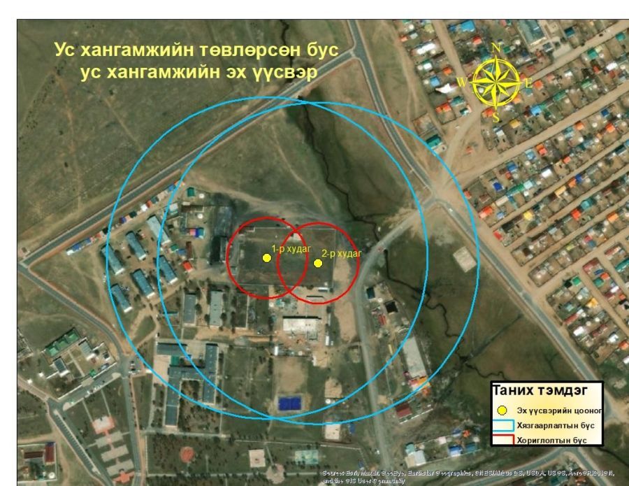 몽골의 물에 관한 법률 22.1조에 명시된 바와 같이 수역과 수원 주변에 특별하고 정기적인 보호 위생 통제 구역을 설정하여 수역과 수원을 보호하고 홍수를 방지합니다.