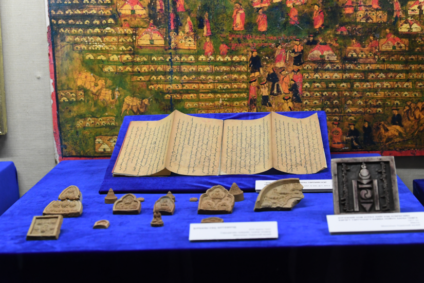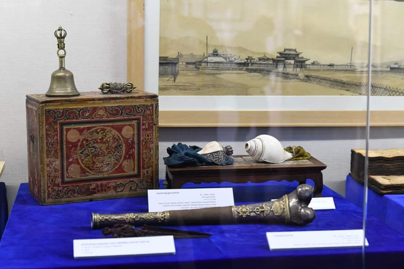 이 전시회의 하이라이트 유물 중 하나는 니슬레 쿠레의 간단테친렌 수도원과 주운 쿠레를 묘사한 지도의 사본과 코루스의 영토를 묘사한 것입니다. 1913년 국무총리실 의뢰에 따라 제작된 4부 중 2부원본이 몽골 국립도서관의 기록보관소에 보관되어 있다.