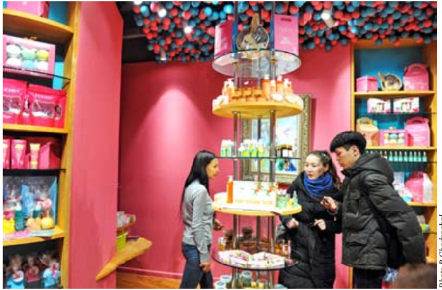 Goo 브랜드의 근로자들은 장미의 모든 페달을 스스로 건조시키고 손으로 암염, 바다 갈매나무, 양 꼬리를 가공하여 몽골인들에게 고품질의 제품을 생산합니다. 완성된 제품은 선반에 줄지어 있었습니다. 화려한 비누와 화려한 모양과 색상거품 같은 목욕 폭탄은 사람을 매료 시킬 것입니다. 밝은 색상과 우아한 패키지가 있는 화장품도 매장에 배달되기를 기다리고 있었습니다.