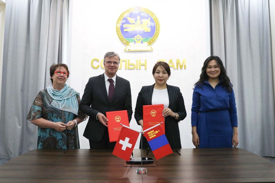 Ch.Nomin 문화부 장관과 몽골 스테파니 부리 스위스 협력 책임자가 서명식에 참석했습니다.
