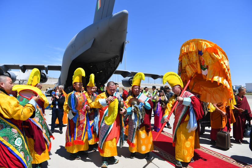 거룩한 유물은 인도 법무부 장관과 키렌 리지 주 (Kiren Rijiju) 법무부 장관이 이끄는 대표단에 의해 인도에서 가져 왔습니다. 거룩한 유물은 6 월 24 일까지 울란바토르의 간단 수도원의 Batsagaan 사원에 전시 될 것입니다.