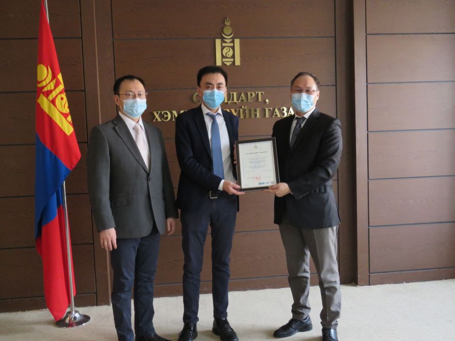 인증 의식은 몽골 표준 및 계측기관에서 개최되었습니다. 행사에는 M.Dondogdorj, 식품농업등광산업부 경산업정책구현조정부장, B.Bilguun, 국가인가센터 이사, S.Soronzonbold, 국가인가센터 이사, 아시아개발은행 T.Enkhjargal, 프로젝트 코디네이터, T.Enkhjargal 프로젝트 코디네이터 등이 참석했습니다.