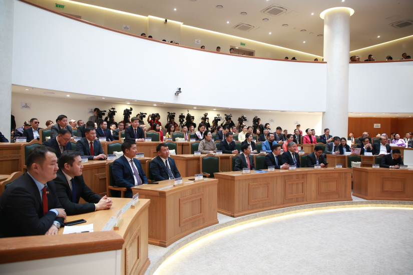 그는 몽골 헌법 제정 30 주년 및 새로운 지방 자치 제도 의 발전 30 주년 을 맞아 개최 된 재단 전국협의회 명예회의 에서 축사 를 하였다 .
