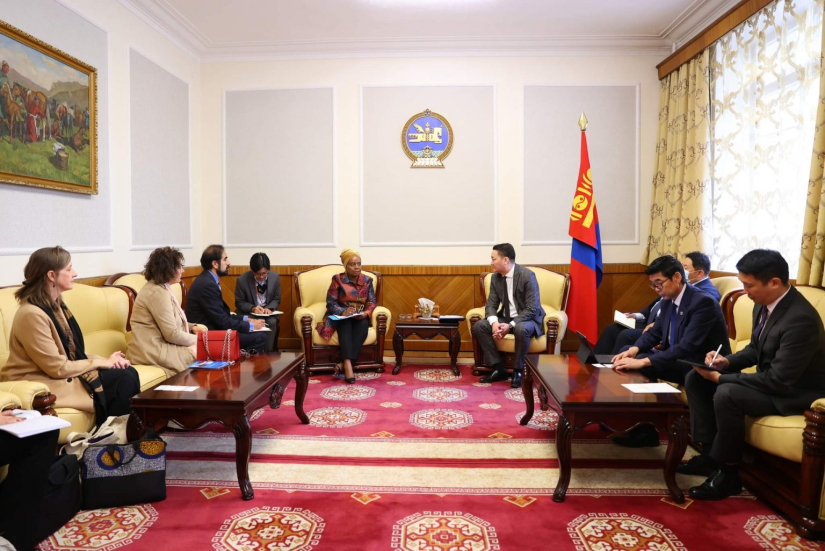 몽골 대통령의 경제 정책 고문 B. Davaadalai, 법률 정책 고문 A. Byambajargal 및 N. Batkhyu 환경 정책 고문이 스위스 제네바에 소재한 국제 무역 센터 부국장인 Dorothy Tembo가 이끄는 대표자들을 만났습니다.